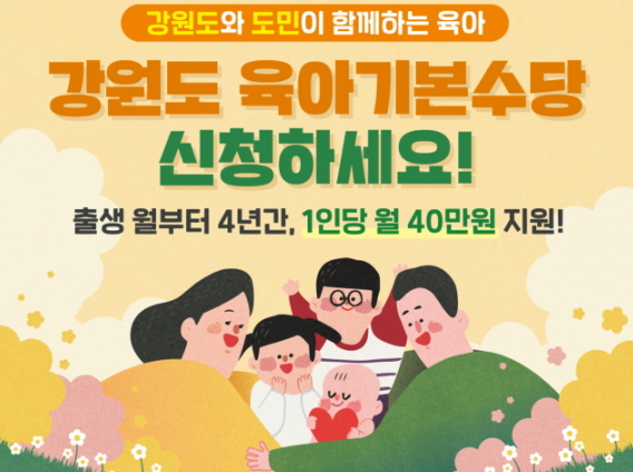 오늘은 강원도 육아 기본수당에 대해서 설명드리려고해요!