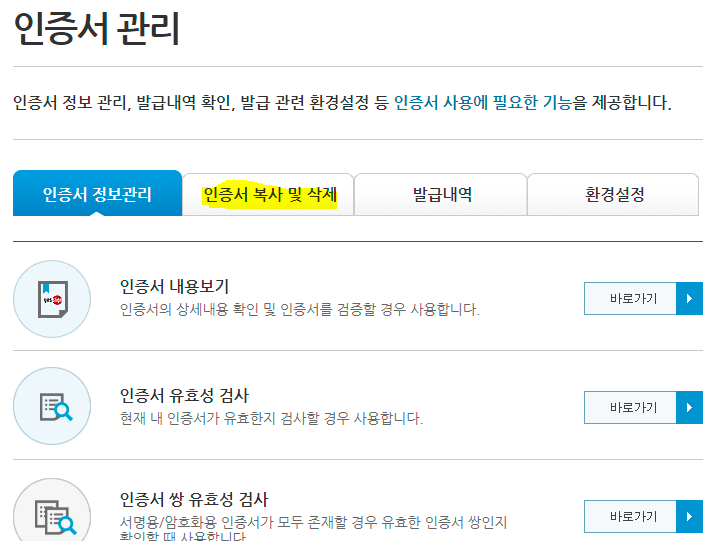 다만 인증서를 옮기거나 삭제 복사 등등 다할 수 있다 보니