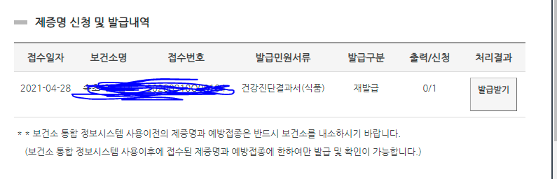 저희는 건강진단결과서(구 보건증)를 발급받을 거기 때문에
