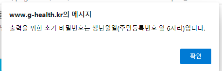 초기 비밀번호가 생년월일이라는 메시지 창이 뜨고요