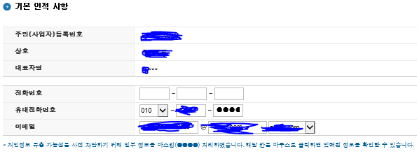 혹시 모르니 사업자번호와