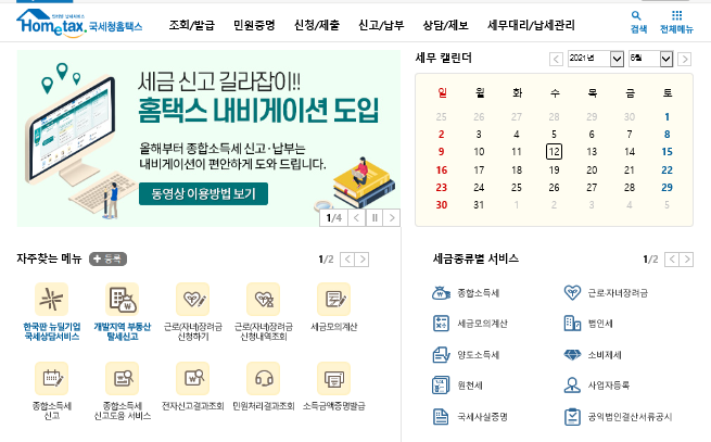 홈택스를 들어가면 나오는 메인화면이고요.